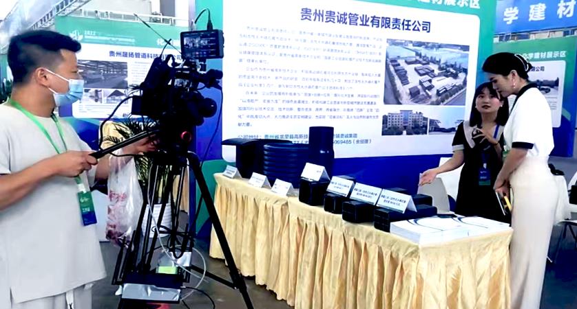 在展会上,贵诚集团展示了碳纤维树钢(改性无水磷石膏)井盖、水箅,聚乙烯(改性无水磷石膏)双层钢塑管、聚氯乙烯(改性无水磷石膏)W型排水管、聚氯乙烯(改性无水磷石膏)电力管及通信管等产品。并在展会直播平台介绍了产品的使用范围和产品的优点。