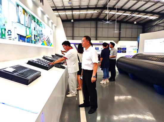 王占杰一行到贵诚集团磷石膏产品推广展示厅,深入了解了贵诚集团在磷石膏绿色产业链上的努力,从2018年开始,贵诚集团将磷石膏运用在高分子材料领域上做市政井盖、水篦、管网产品,是为了更好地利用贵诚自身在市政领域的生产技术及平台优势,搭建磷石膏综合利用消纳平台,带动更多企业共同合作,一起为磷石膏综合利用“变废为宝”的事业奋斗。
