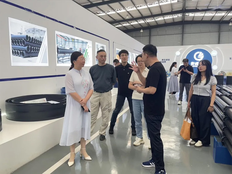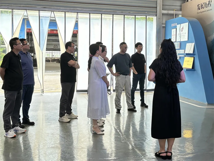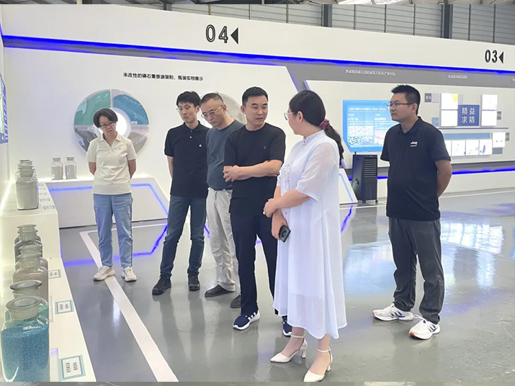 王教授一行人首先来到企业展厅进行实地参观,详细了解了贵诚发展历史、磷石膏产业化应用发展现状以及贵诚旗下磷石膏产品分类等情况。