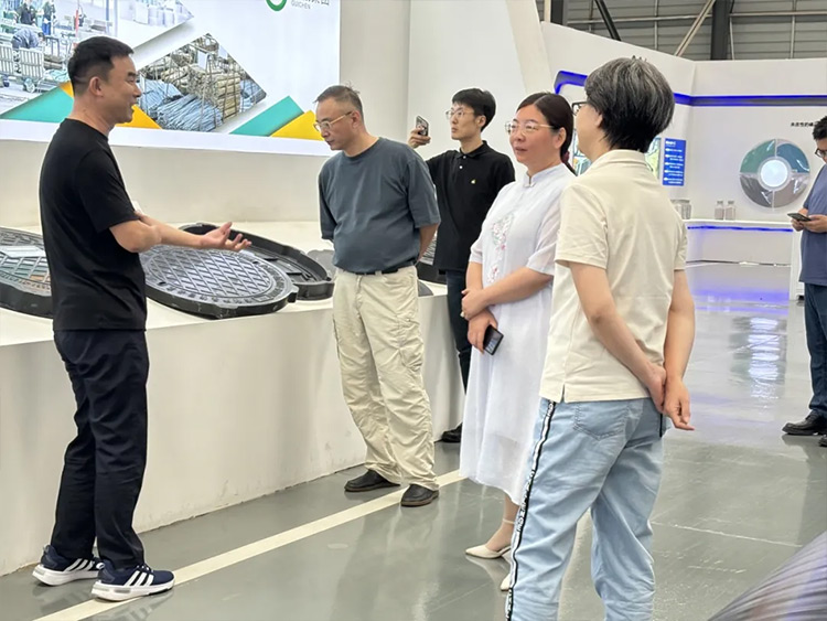 贵诚集团董事长赵建波热情地对前来参与调研的各位领导介绍了公司热门产品的磷石膏应用优势及产品性能。